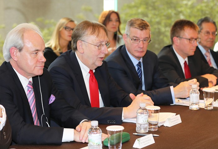 (서울=포커스뉴스) 17일 오후 서울 웨스틴 조선호텔 로즈룸에서 한-EU FTA 발효 5주년 평가를 위해 방한중인 베른트 랑에(Bernd LANGE, 사회당 소속) 유럽의회 국제통상위 의장을 비롯한 8명의 국제통상위 위원이 한-EU FTA를 포함한 양측 통상정책과 한국의 향후 FTA 추진방향 등에 관해 의견을 교환하고 있다. <사진제공=산업통상자원부>
