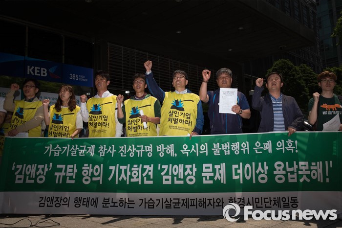 아울러 "옥시는 지난 2011년에도 김앤장을 고용해 '황사나 꽃가루가 원인일 수 있다'는 등의 물타기를 자행한 5년의 세월 동안 피해자들은 깊은 고통 속에서 살아야 했고 이 중 많은 사람은 목숨을 잃었다"고 목소리를 높였다.