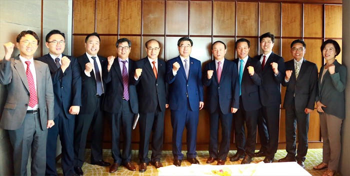 (서울=포커스뉴스) 이기권 고용노동부 장관이 17일 베트남 하노이 롯데호텔에서 현지에 진출한 우리 기업 임원들과 간담회를 갖고, 애로사항을 청취하며 격려했다. 이 장관이 참석자들과 기념촬영 하고 있다. <사진제공=고용노동부>