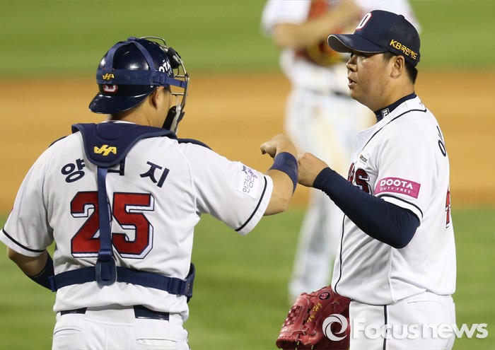 | △ 두산 이현승과 양의지 |