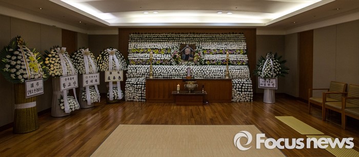 (서울=포커스뉴스) 18일 오전 서울 송파구 서울아산병원 장례식장에 故김재순 전 국회의장의 빈소가 마련되어 있다. 고인은 7선 국회의원을 지냈고 13대 국회에서 전반기(1988~1990년) 국회의장을 맡았다.