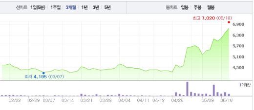 에이프로젠 측은 “그동안 연구개발에 집중해오다 지난해부터 본격적인 매출이 나오기 시작했다”고 설명했다. 에이프로젠은 이달 중 코스닥 상장을 위한 예비심사를 청구할 예정이다.주가흐름<사진출처=네이버 캡쳐>