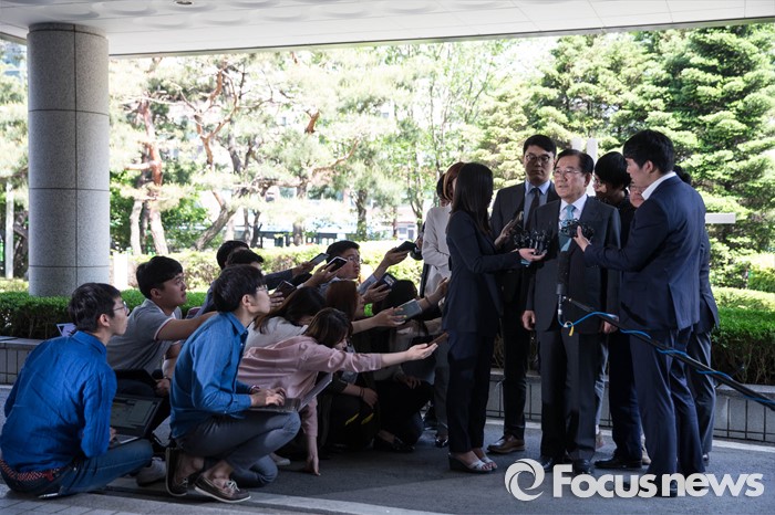 (서울=포커스뉴스) 18일 오전 서울 양천구 서울남부지방법원에서 불법 정치자금 수수 혐의를 받고 있는 박준영 국민의당 당선인이 영장실질심사를 받기 위해 들어서기 전 취재진의 질문에 답하고 있다.
