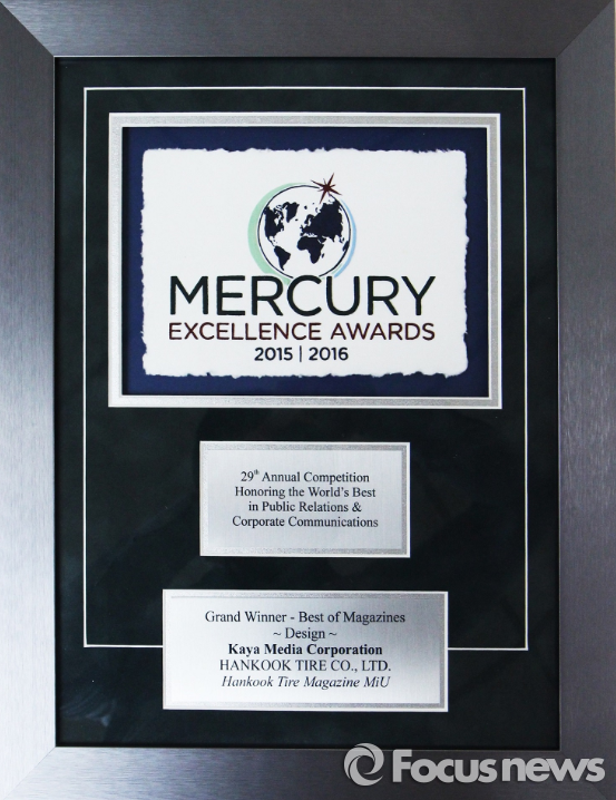한편 미국의 멀콤(MerComm)사가 주관하는 머큐리 어워드는 기업의 홍보 제작물과 커뮤니케이션 활동을 평가하는 국제 공모전으로 일반간행물, 광고, PR·마케팅 등 총 24개 부문에 대해 시상한다.<사진제공=한국타이어>