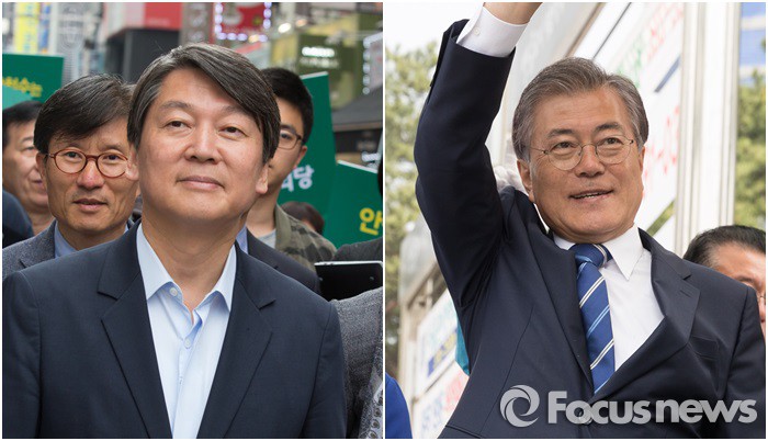 문 전 대표와 안 대표는 18일 오전 광주 북구 망월동 5·18 민주국립묘지에서 열린 제36주년 5·18민주화운동 기념식에서 마주쳤다. 둘 사이의 거리는 불과 1미터도 되지 않았다.