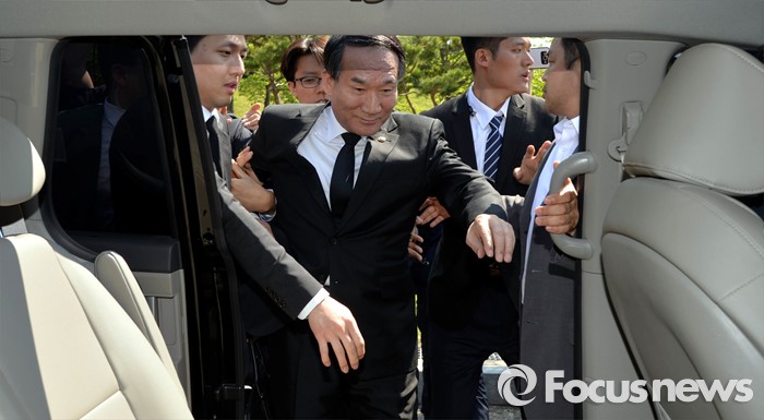 (광주=포커스뉴스) 36주년 5·18민주화운동 기념식이 거행된 18일 오전 광주 북구 운정동 5·18민주묘지에서 행사장에 참석하려는 박승춘 보훈처장이 5월 유가족의 항의를 받고 기념식장을 떠나고 있다.