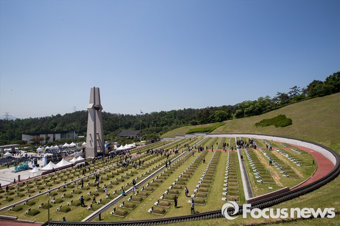 (광주=포커스뉴스) 36주년 5·18민주화운동 기념식이 거행된 18일 오전 광주 북구 운정동 5·18민주묘지에서 유가족들이 희생자들을 기리고 있다.