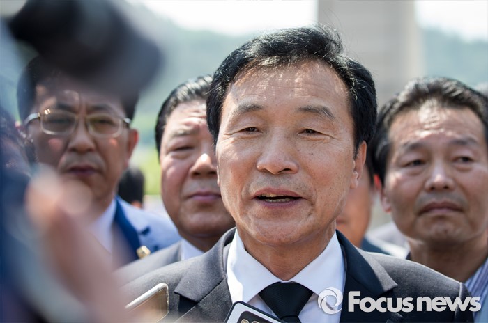 (광주=포커스뉴스) 36주년 5·18민주화운동 기념식이 거행된 18일 오전 광주 북구 운정동 5·18민주묘지에서 손학규 전 더불어민주당 상임고문이 취재진의 질문에 답하고 있다.