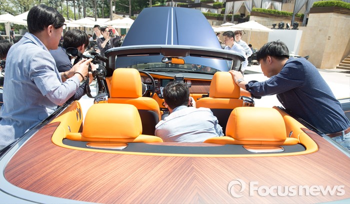 (서울=포커스뉴스) 18일 오전 서울 중구 반얀트리 클럽 앤 스파에서 열린 '롤스로이스 던(DAWN) 발표 행사중 취재진들이 신차의 실내모습을 카메라에 담고 있다.