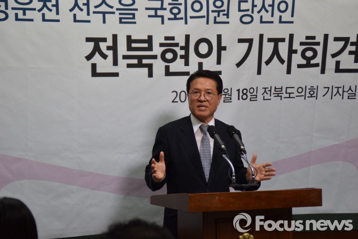 (전주=포커스뉴스) 18일 오후2시께 전북도의회 브리핑룸에서 정운천 국회의원 당선인이 전북 현안에 대해 기자회견을 하고 있다.