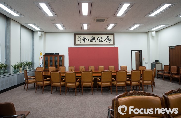 (서울=포커스뉴스) 18일 오후 서울 여의도 국회 새누리당 원내대표실이 텅 비어있다. 정진석 원내대표는 전날 오후 비상대책위·혁신위 추인이 무산되는 사태가 벌어진 후 18일 오전 광주 국립 5·18 민주묘지에서 열린 제36주년 5·18 민주화운동 기념식에 참석하고 지역구인 충남 공주로 자리를 옮겼다.
