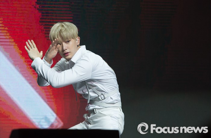 (서울=포커스뉴스) 18일 오후 서울 광진구 예스24 라이브홀에서 열린 아이돌그룹 몬스타엑스의 세번째 미니앨범 'THE CLEAN PART. 1 LOST' 발표 쇼케이스에 참석한 멤버 원호가 포토타임을 갖고 있다.