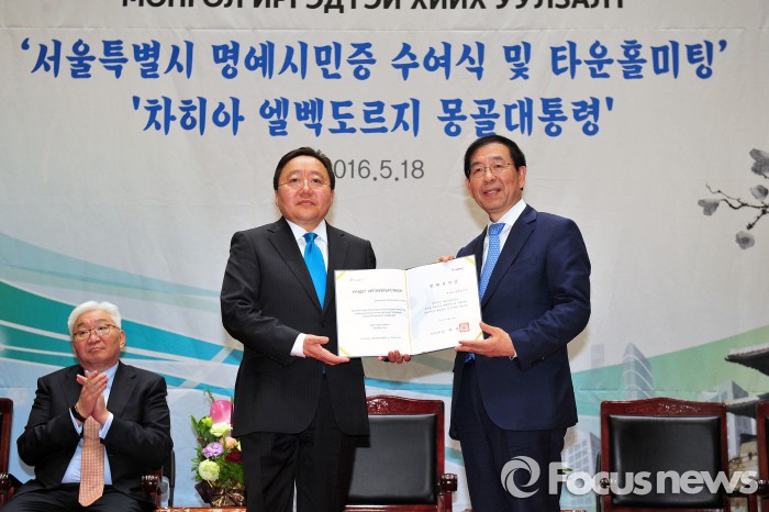 (서울=포커스뉴스) 서울시는 18일 국빈 방문한 차히아 엘벡도르지(Elbegdorj Tsakhia) 몽골 대통령이 서울시 명예시민이 됐다고 밝혔다.