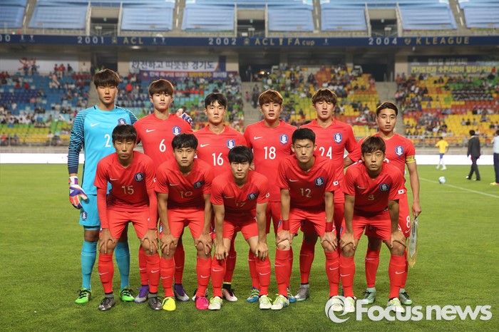 (수원=포커스뉴스) 18일 오후 경기도 수원시 수원월드컵경기장에서 열린 2016 수원 JS컵 U-19 국제청소년축구대회 대한민국과 브라질의 경기에서 한국팀이 기념촬영을 하고 있다.