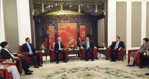 한편, 최근 사우디아라비아는 국영 석유회사인 아람코의 지분 5%를 기업공개(IPO), 모금한 약 2조달러(약 2500조원)를 투입해 석유 의존형 경제에서 탈피하고 경제구조를 개조하는 ‘사우디 비전 2030’을 발표 한 바 있다.18일 중국 중난하이(中南海)에서 리커창 총리와 알 왈리드 왕자의 면담에 동석한 최규선 회장. (왼쪽부터) 최규선 회장, 사마드조크(samadzok) 킹덤홀딩대표, 알 왈리드 왕자, 리커창 총리, 왕이 중국 외교부장, 중국인민대외우호협회 리샤오린 회장이 대화를 나누고 있다. <사진제공=썬코어 및 케이티롤>