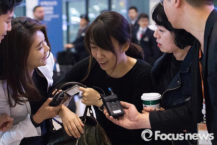 (인천공항=포커스뉴스) 한국인 최초 맨부커상을 수상한 소설 '채식주의자' 저자 한강이 19일 오전 인천국제공항을 통해 귀국하며 취재진 질문을 듣고 있다.