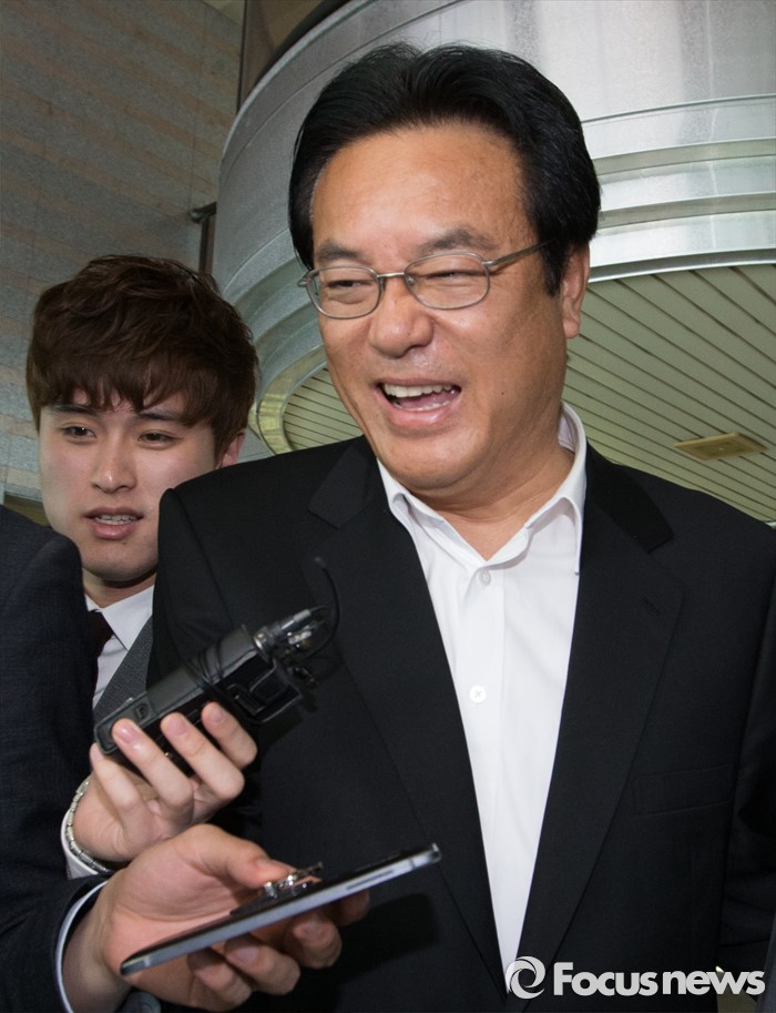 (대전=포커스뉴스) 정진석 새누리당 원내대표가 19일 오전 대전 동구 천주교 대전교구청을 찾아 유흥식 주교와 면담을 갖고 교구를 나서고 있다.