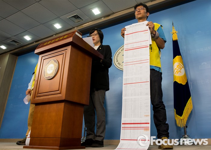 (서울=포커스뉴스) 19일 오전 여의도 국회 정론관에서 열린 '가습기살균제 피해 접수 결과 보고' 관련 기자회견에 참석한 가습기살균제 피해자 가족 안성우씨가 피해 신고 현황이 기록된 종이를 들고 있다.