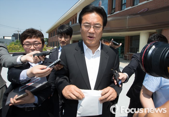 (대전=포커스뉴스) 정진석 새누리당 원내대표가 19일 오전 대전 동구 천주교 대전교구청을 찾아 유흥식 주교와 면담을 갖고 교구를 나서며 취재진의 질문을 받고 있다.