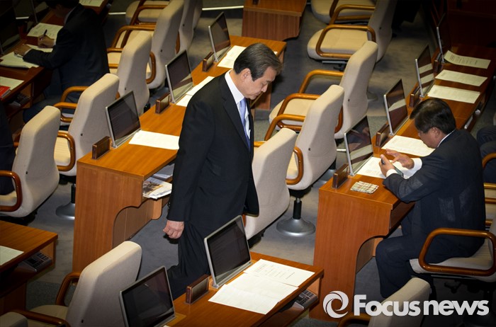 (서울=포커스뉴스) 19일 오전 서울 여의도 국회에서 열린 342회 국회(임시회) 1차 본회의에 참석한 김무성 새누리당 전 대표가 자리로 향하고 있다.