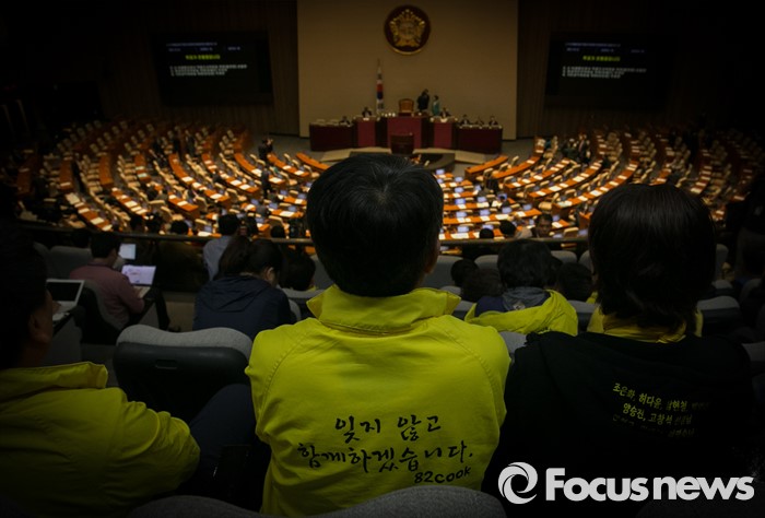 (서울=포커스뉴스) 19일 오전 서울 여의도 국회에서 열린 342회 국회(임시회) 1차 본회의에 방청 온 세월호 참사 유가족들이 4·16 세월호참사 특별조사위원회 황전원 위원 선출안 투표 결과를 지켜본 뒤 퇴장하고 있다.