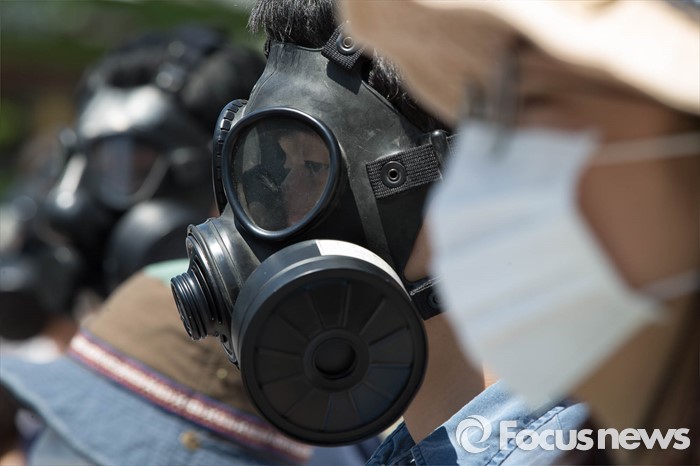 | △ 광화문에 등장한 방독면 |