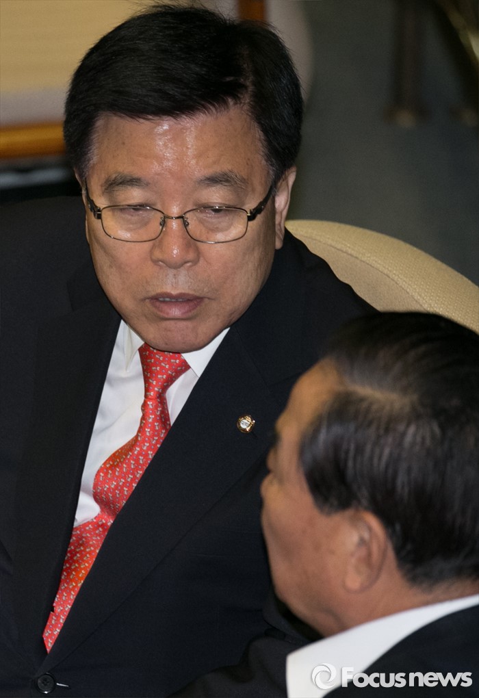 (서울=포커스뉴스) 19일 오전 서울 여의도 국회에서 열린 342회 국회(임시회) 1차 본회의에 참석한 김광림(왼쪽) 새누리당 정책위의장이 서청원 전 최고위원이 대화하고 있다.