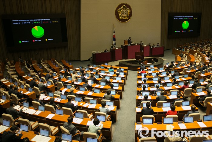 (서울=포커스뉴스) 19일 오전 서울 여의도 국회에서 열린 342회 국회(임시회) 1차 본회의에 참석한 여야 의원들이 안건 의결을 하고 있다.