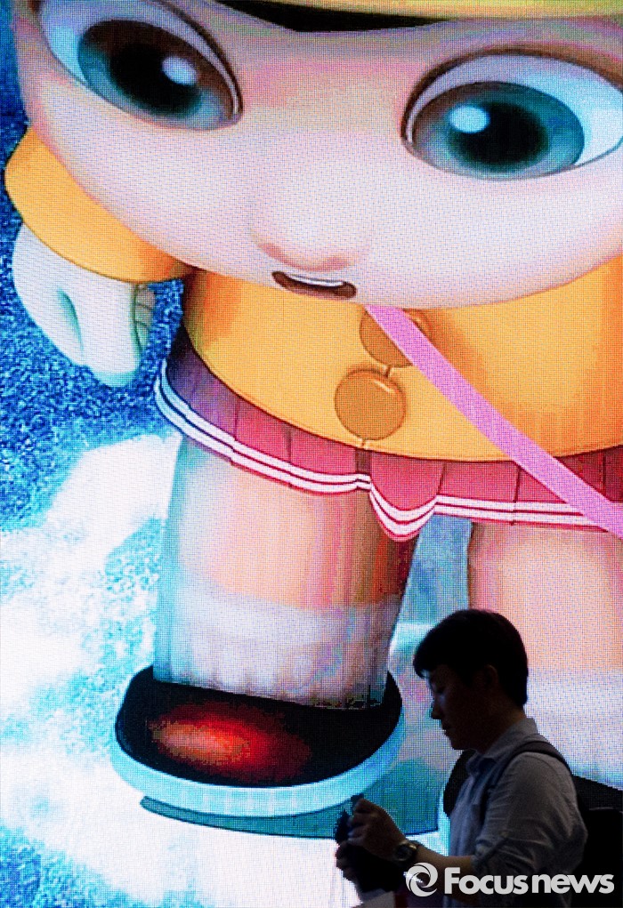 (고양=포커스뉴스) 19일 오후 경기 고양시 킨텍스 제1전시관에서 열린 2016 플레이엑스포를 찾은 관람객들이 대형 게임 전광판 앞을 지나가고 있다.