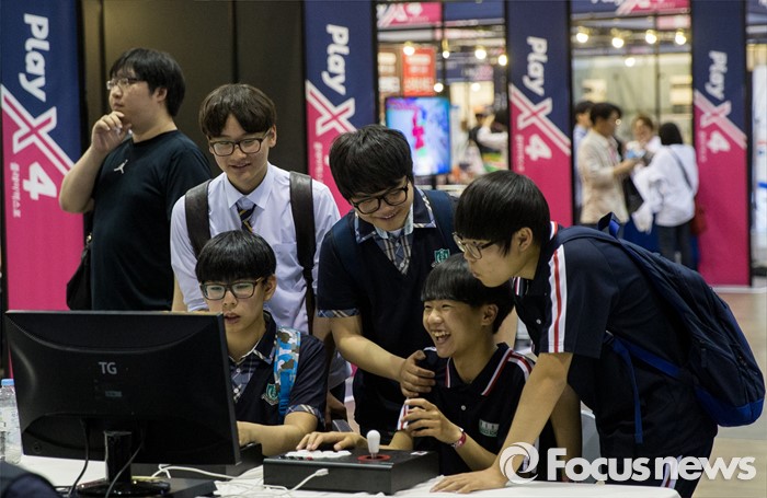 (고양=포커스뉴스) 19일 오후 경기 고양시 킨텍스 제1전시관에서 열린 2016 플레이엑스포를 찾은 관람객들이 게임을 즐기고 있다.