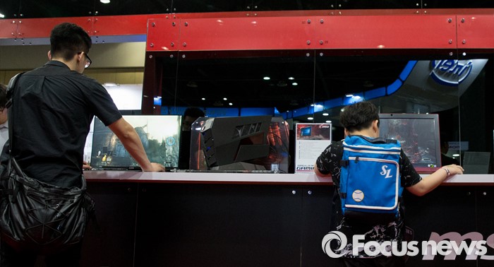 (고양=포커스뉴스) 19일 오후 경기 고양시 킨텍스 제1전시관에서 열린 2016 플레이엑스포를 찾은 관람객들이 게임을 즐기고 있다.