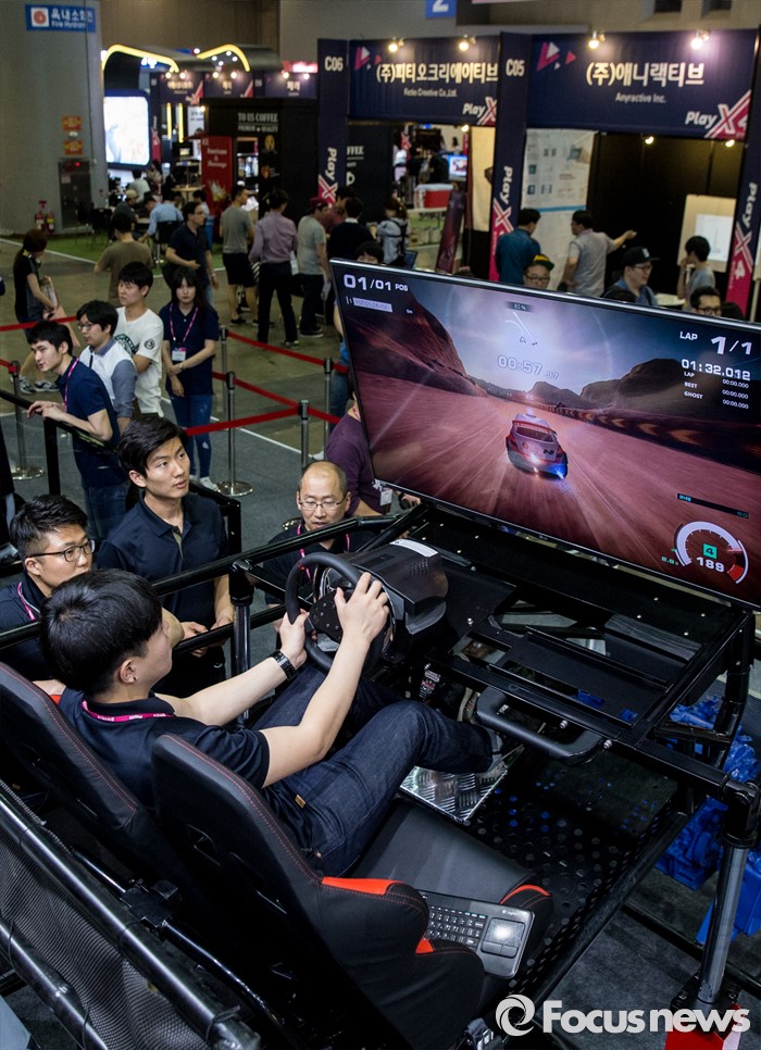 (고양=포커스뉴스) 19일 오후 경기 고양시 킨텍스 제1전시관에서 열린 2016 플레이엑스포를 찾은 관람객들이 게임을 즐기고 있다.