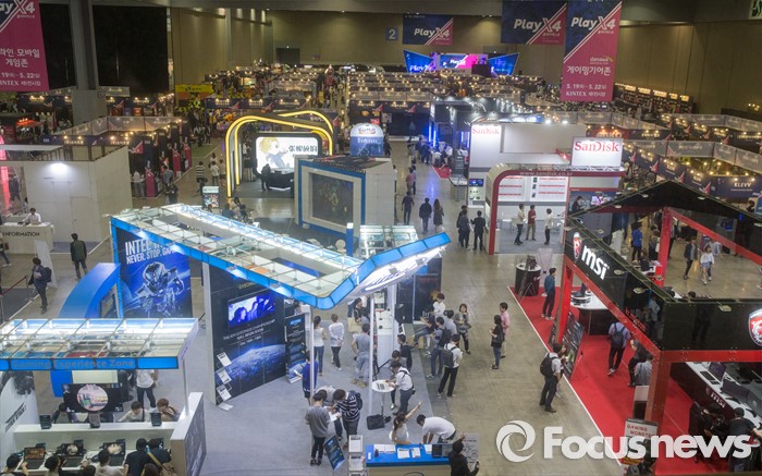 (고양=포커스뉴스) 19일 오후 경기 고양시 킨텍스 제1전시관에서 열린 2016 플레이엑스포 행사장이 관람객들로 붐비고 있다.