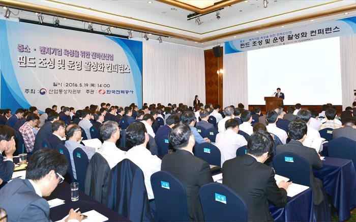 이날 행사에는김시호 한전 부사장, 김수욱 서울대 교수, 정은호 한전 경제경영연구원장, 조효승 키움투자자산운용 본부장, 이동준 산일전기 상무, 김철환 오렌지파워 대표, 신중섭 맥쿼리 코리아 전무와 기업, 창업동아리, 민간운용사 관계자 등 150여명이 참석했다. <사진제공=산업통상자원부>