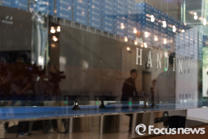 (서울=포커스뉴스) 한진해운의 채무조정을 위한 첫 사채권자 집회가 열린 19일 오후 서울 영등포구 한진해운 본사 로비 선박모형에 대기중인 취재진이 비치고 있다.