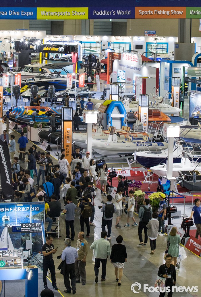 (고양=포커스뉴스) 19일 오후 경기 고양시 킨텍스 제1전시관에서 열린 2016 경기국제보트쇼를 찾은 관람객들이 다양한 보트를 살펴보고 있다.