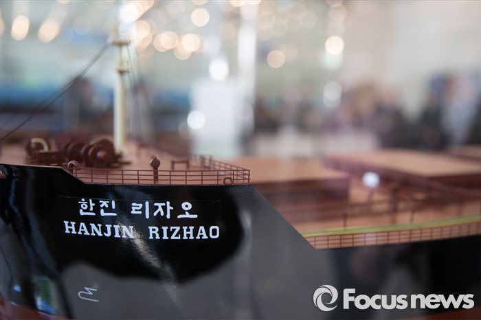 (서울=포커스뉴스) 한진해운의 채무조정을 위한 첫 사채권자 집회가 열린 19일 오후 서울 영등포구 한진해운 본사 로비에 선박모형이 보이고 있다.