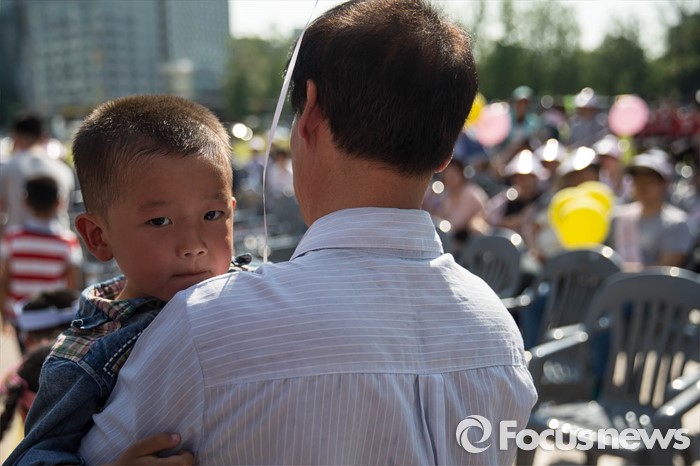 (서울=포커스뉴스) 19일 오후 서울시청광장에서 열린 '제1회 건강가정 다출산 범국민대회'에 참석한 김정수, 함은주 가족이 다출산 건강가정 상을 받고 단상을 내려가고 있다.