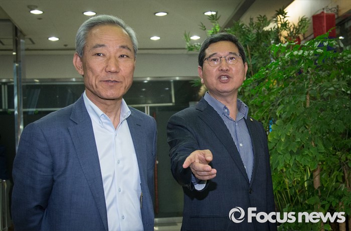 (서울=포커스뉴스) 19일 오후 서울 여의도 한 음식점에서 19대 국회 마지막 본회의를 마친 김종훈(왼쪽) 새누리당 의원과 김학용 의원이 김무성 전 대표 주재로 열린 식사모임에 참석하고 있다.