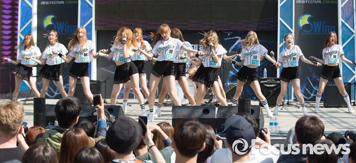 (서울=포커스뉴스) 19일 오후 서울 종로구 성균관대 캠퍼스에서 걸그룹 우주소녀의 멤버들이 'Y24 스쿨어택' 행사에 참여해 무대를 선보이고 있다.
