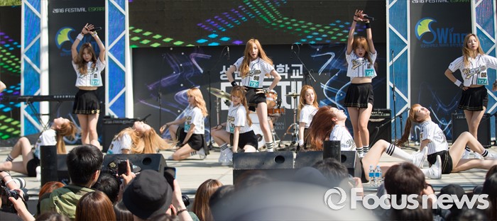 (서울=포커스뉴스) 19일 오후 서울 종로구 성균관대 캠퍼스에서 걸그룹 우주소녀의 멤버들이 'Y24 스쿨어택' 행사에 참여해 무대를 선보이고 있다.