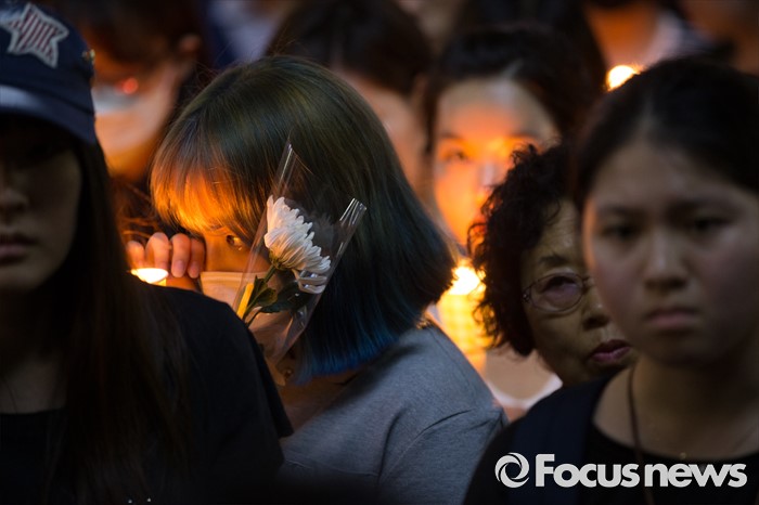 (서울=포커스뉴스) 19일 오후 서울 서초구 강남역 10번출구에서 시민들이 '강남 묻지마 살인' 피해자를 추모하는 촛불문화제를 하고 있다.