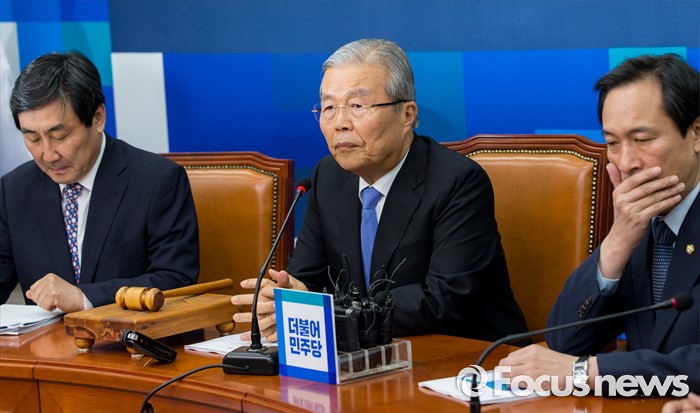 (서울=포커스뉴스) 20일 오전 서울 여의도 국회에서 열린 더불어민주당 비상대책위원회의에 참석한 이종걸(왼쪽부터) 전 원내대표와 김종인 비대위 대표, 우상호 원내대표가 생각에 잠겨 있다.