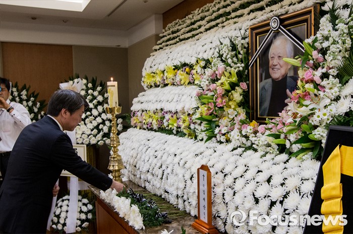 (서울=포커스뉴스) 20일 오전 서울 송파구 아산병원 장례식장에 마련된 故 김재순 전 국회의장의 빈소를 찾은 안철수 국민의당 상임공동대표가 헌화하고 있다.