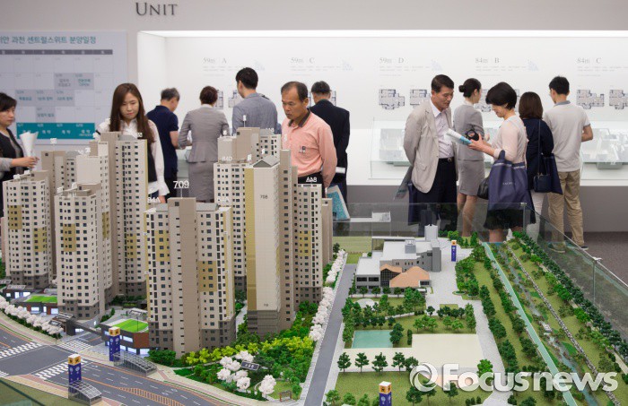 (서울=포커스뉴스) 20일 오전 서울 송파구 래미안 하우스에 개관한 래미안 과천 센트럴 스위트 견본주택을 찾은 시민들이 모형도를 살펴보고 있다.