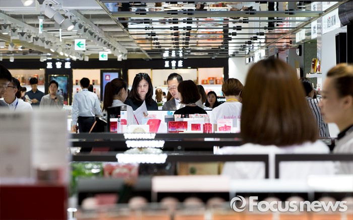 (서울=포커스뉴스) 두타면세점이 프리오픈한 20일 오후 서울 중구 두산타워 면세점에서 관광객과 소비자들이 매장을 둘러보고 있다.