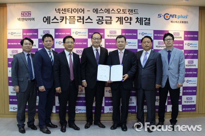 (서울=포커스뉴스) 넥센타이어가 20일 서울 방배동 넥센타이어 서울사무소에서 에스에스오토랜드의 경정비 브랜드 '에스카플러스'와 타이어 단독 공급계약을 체결했다.