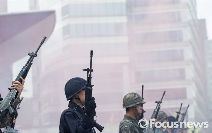 (서울=포커스뉴스) 20일 오후 서울 강남구 코엑스에서 열린 '2016 재난대응 안전한국훈련'에 참여한 훈련병력들이 테러대응훈련을 펼치고 있다.