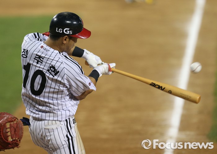 (서울=포커스뉴스) 20일 서울 잠실구장에서 열린 2016 프로야구 넥센-LG 경기 5회말 1사 2,3루에서 LG 정주현이 2타점 중전 안타를 치고 있다.