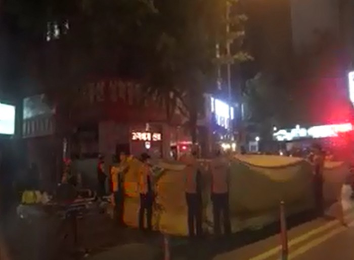 소방당국에 따르면 이 남성은 5m 높이 건물 간판과 가로수를 오가며 부인과 딸을 데려와 달라며 구조대와 1시간 반 동안 대치했다.